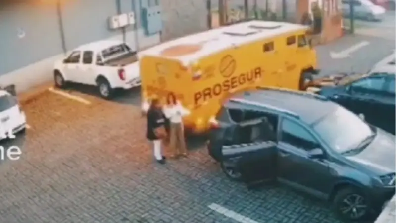 Las cámaras de seguridad registraron el momento exacto en que un camión blindado de transporte de valores retrocedió y atropelló a dos mujeres en una calle de Chile. El conductor fue detenido tras el hecho.